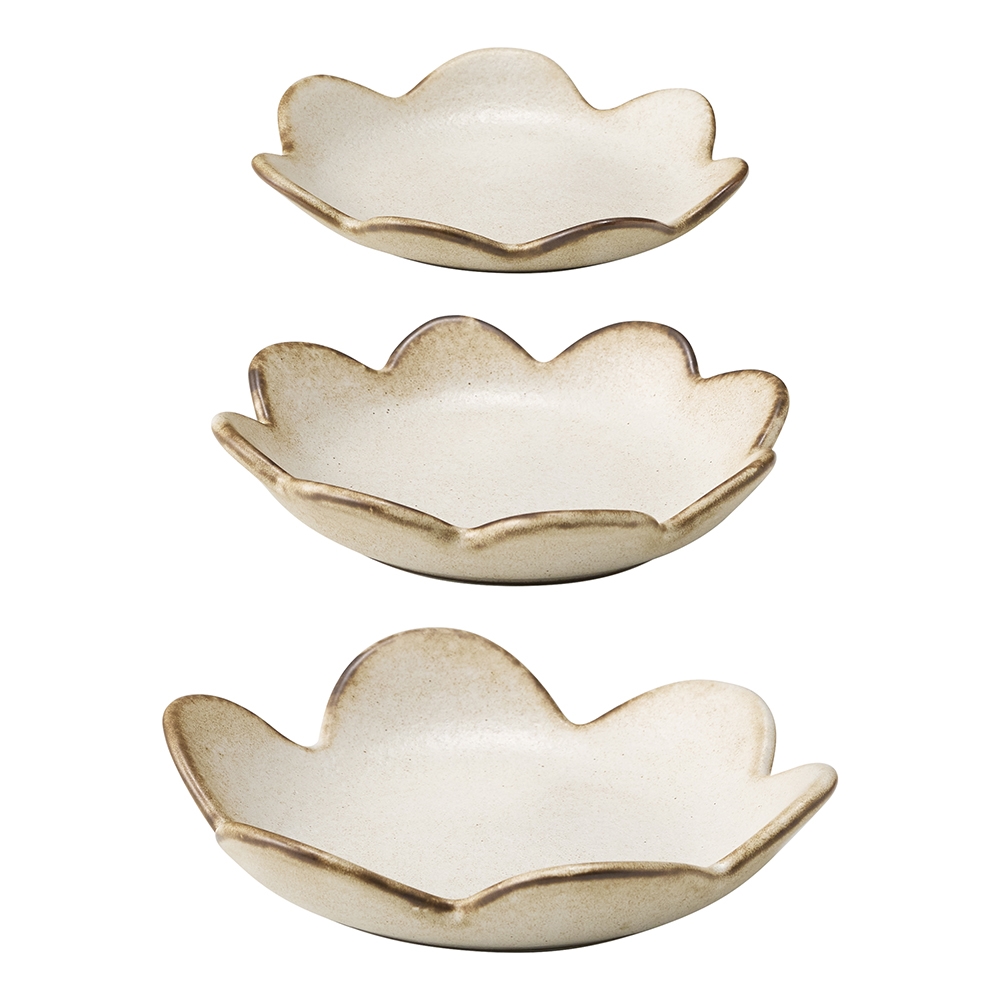 Beautifully imperfect floral silhouettes define the Cecile flower plates. Organic, unrefined rims lend a well-loved charm, while earthy base tones are brought to life by delicate pin-hole detailing. Designed by Noreen Falvey and crafted from stoneware, each plate is finished with a semi-matte glaze that enhances the artisan character of this set of three.