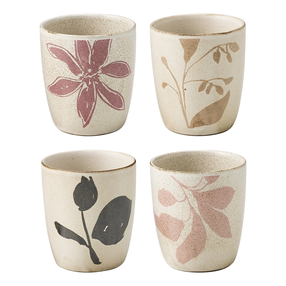 Hand-drawn floral silhouettes bloom across a rustic, beautifully imperfect base on Ecology's Cecile collection. Unrefined edges lend a well-loved charm, while earthy base tones are brought to life by delicate pin-hole detailing. Made of stoneware and designed by Noreen Falvey, Cecile's Set of 4 Latte Cups showcase bold, flowing prints in four distinct tones of Sienna brown, Midnight charcoal, Desert Sky pink and a dark mauve Ember. A semi-matte glaze completes the look, enhancing the artisan character of this serveware collection.