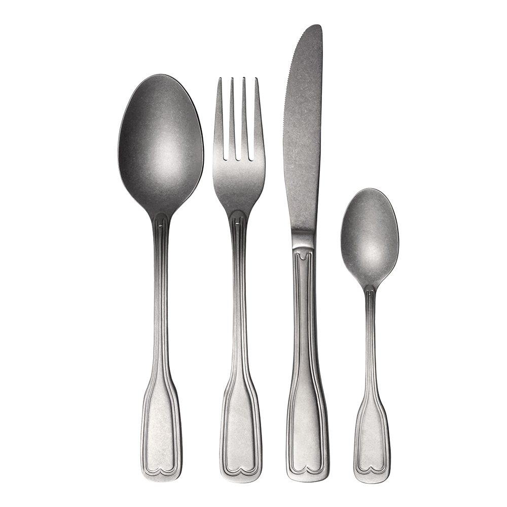 Old-world charm is echoed in form and finish across the Anais cutlery collection. Made of stainless steel with a brushed matte finish, Anais includes a 16-piece cutlery set, a set of 3 cheese knives, salad servers, and generously sized serving spoons. The collection is available in vintage silver or vintage copper, adding timeless character to any table.