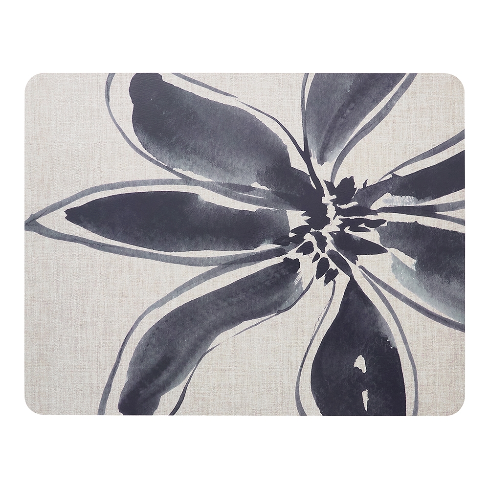Hand-drawn floral silhouettes bloom across a rustic, beautifully imperfect base on Ecology's Cecile collection. Designed by Noreen Falvey, these cork-backed placemat and coaster sets showcase bold, flowing prints in four distinct tones of Sienna brown, Midnight charcoal, Desert Sky pink and a dark mauve Ember.