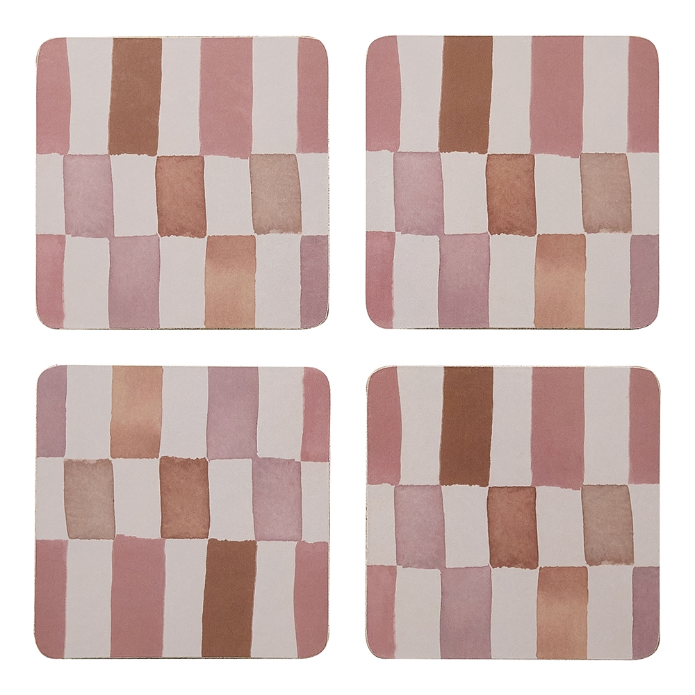 The wavy, brushstroke checkerboard of Ecology's Check collection delivers a retro-modern twist to everyday dining. The playful design is rendered in warm blush pinks and terracotta tones across both placemats and coordinating coasters. With an easy to clean, hard top and cork backing, each piece is designed to protect your table while bringing a pop of personality to every meal.