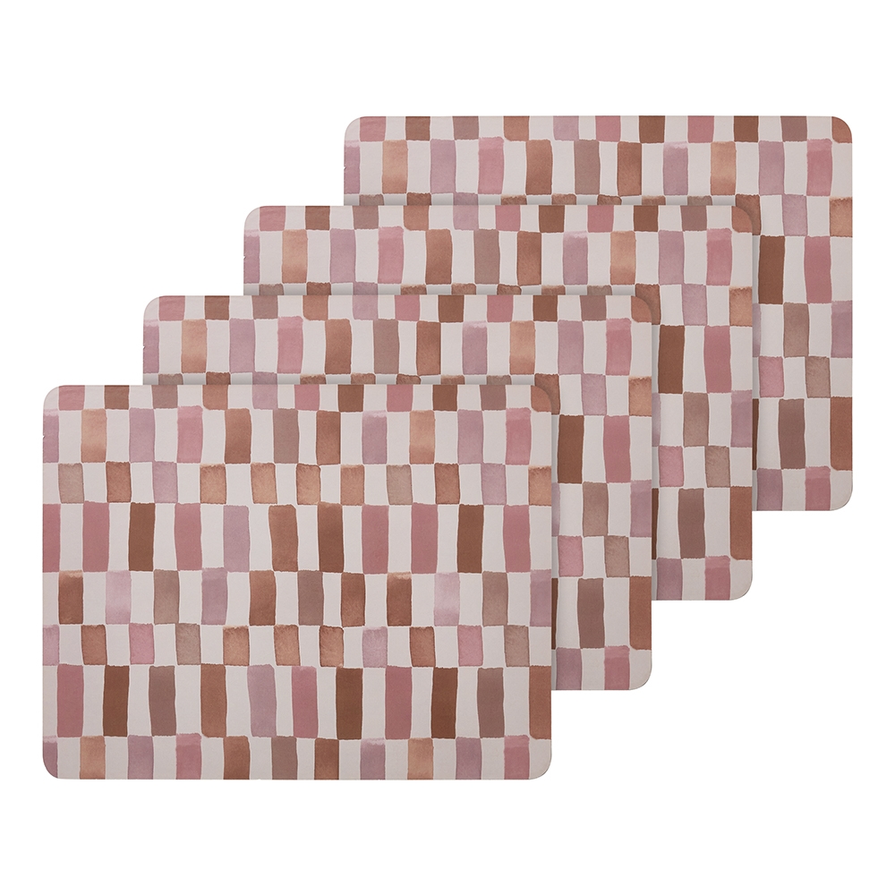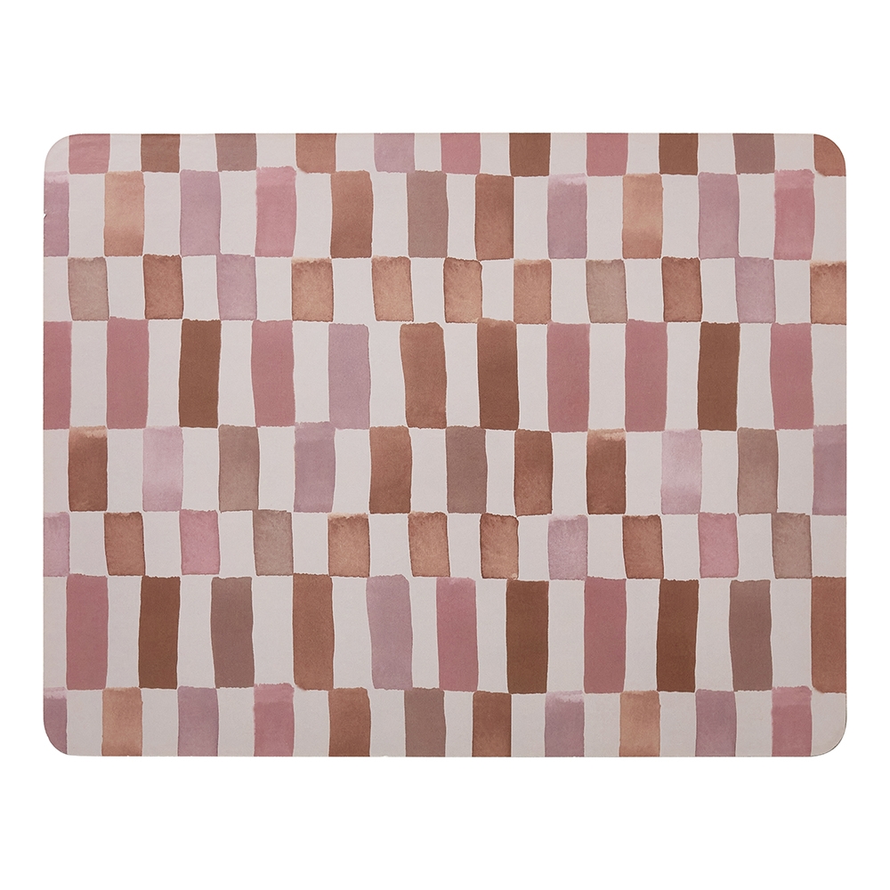 The wavy, brushstroke checkerboard of Ecology's Check collection delivers a retro-modern twist to everyday dining. The playful design is rendered in warm blush pinks and terracotta tones across both placemats and coordinating coasters. With an easy to clean, hard top and cork backing, each piece is designed to protect your table while bringing a pop of personality to every meal.
