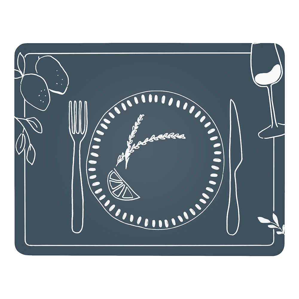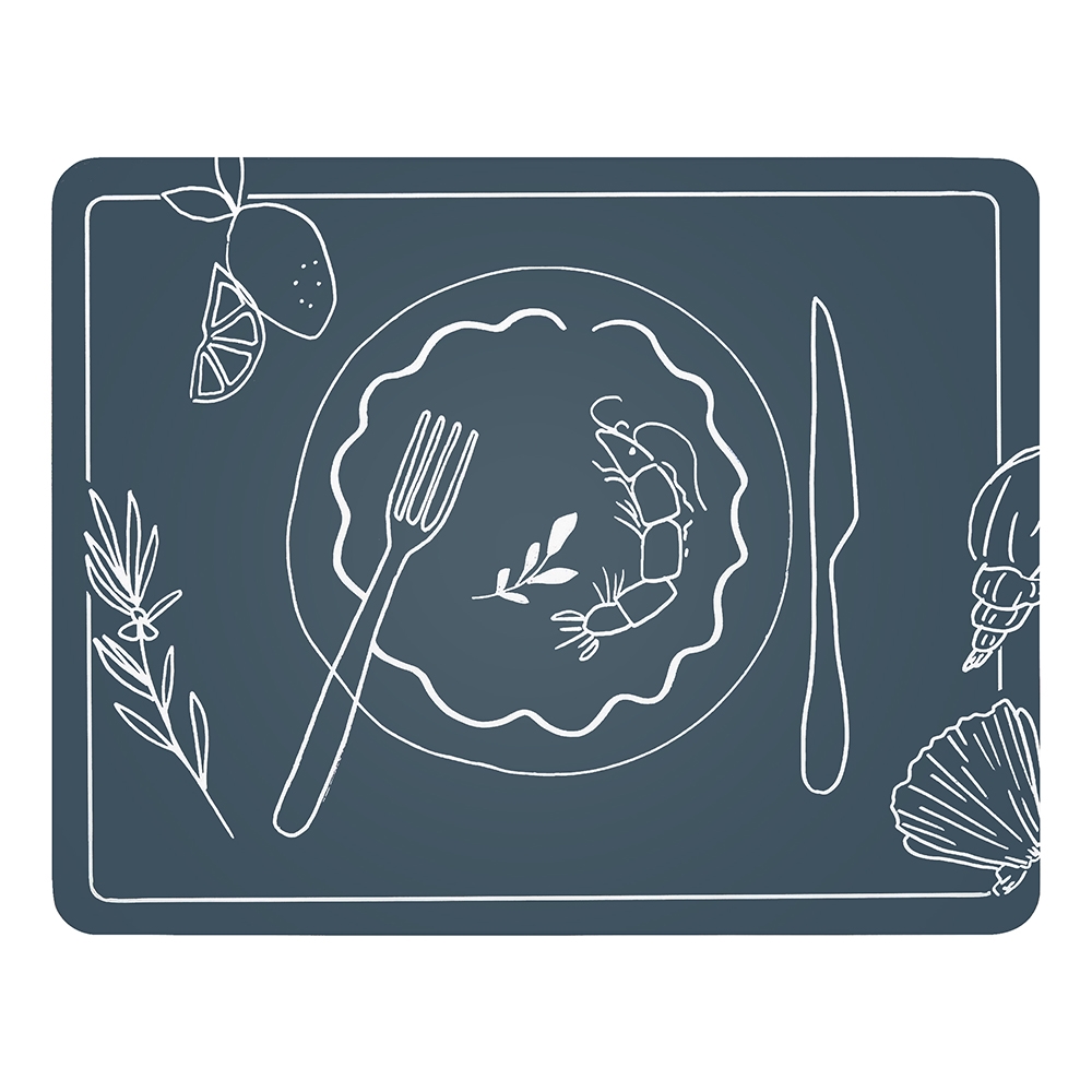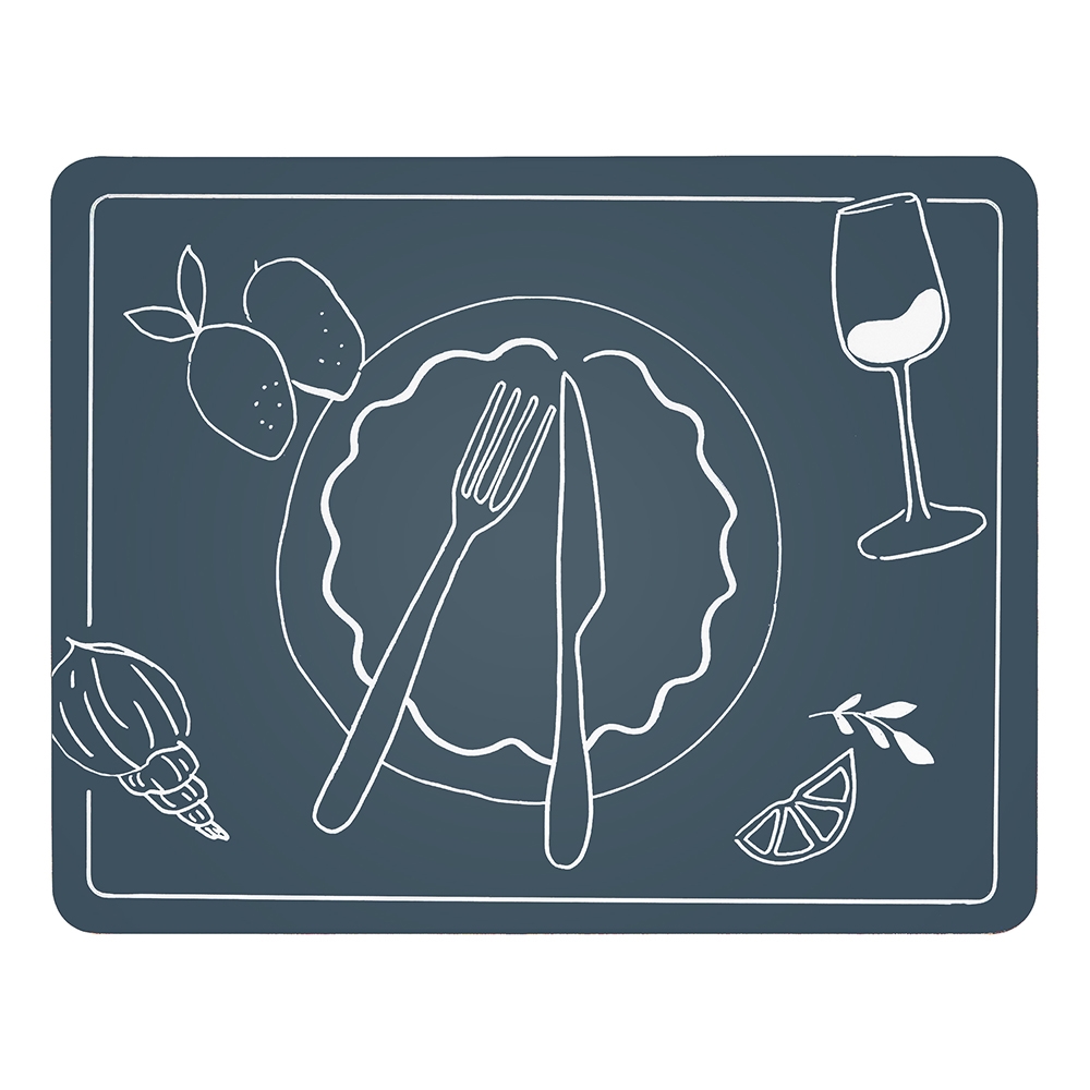 A welcoming table starts with an inspiring base and Ecology's Feast collection is the perfect place to begin. Designer Noreen Falvey's four unique, ocean-inspired illustrations are laid-out in white line drawings set against an inky blue base. The placemats and coasters feature a hard top coupled with a cork backing to protect your table for years to come.