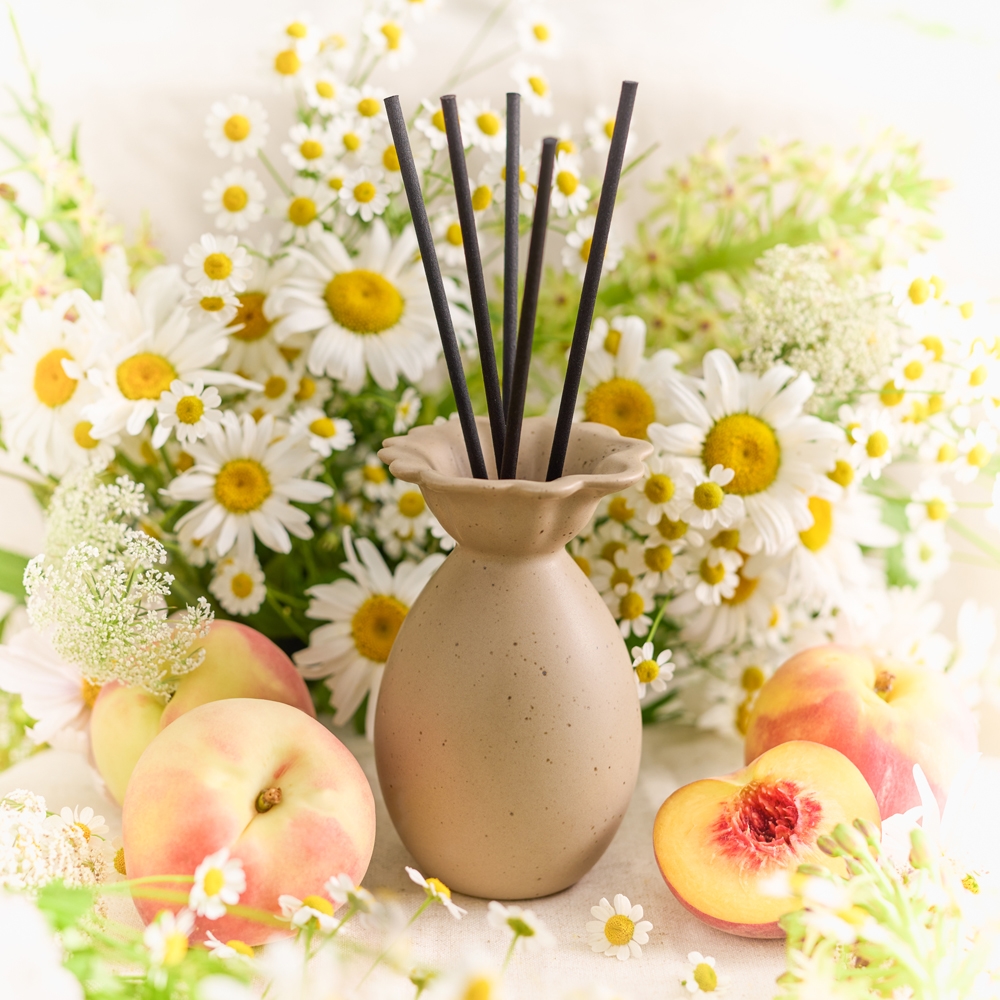 Fields of fresh, uplifting daisies sway in the breeze alongside fragrant peach blossom and the subtle sweetness of geranium, with earthy notes of woody cedar and the deep richness of amber.